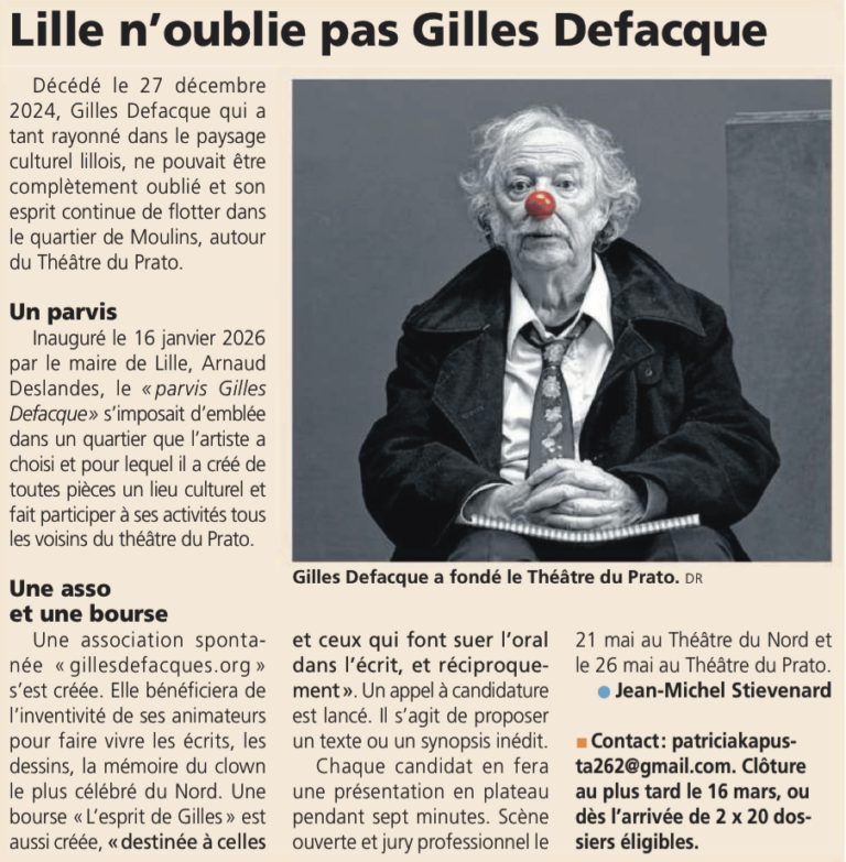 de et par : Gilles Defacque, directeur fondateur du Prato jusqu’en 2021 distribution à géométrie variable : Céline Brunelle, Sophie Cornille,